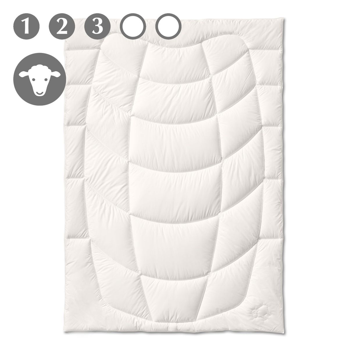 Die Schurwolldecke Medium ist leicht und anschmiegsam. Gefüllt ist die Bettdecke mit 100 % feinster isländischen Schafschurwolle. Dank der Körperformsteppung schmiegt sich die Decke schön an den Körper an.