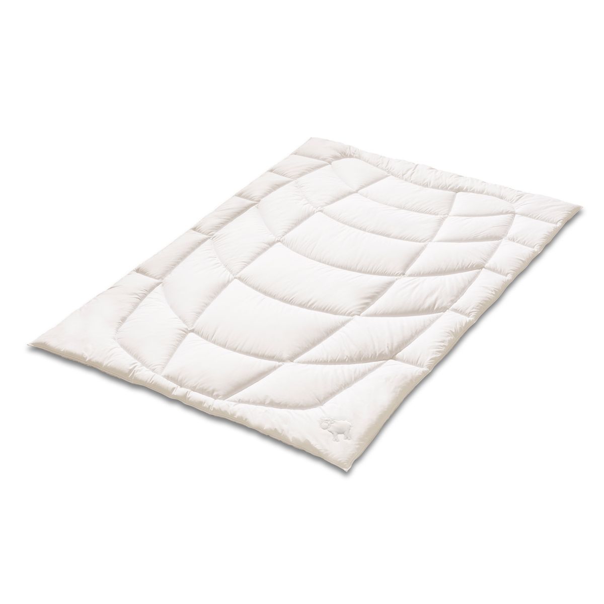 All-Season Schurwolldecke, Füllung: 100 % isländische Schafschurwolle, Bezug: feiner Mako-Edel-Satin, 100 % Baumwolle.