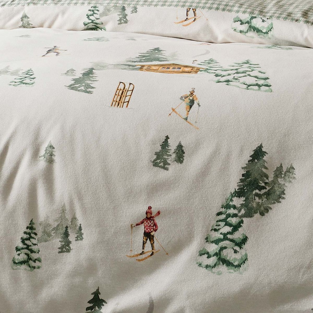 Warme Fein-Biberbettwäsche fleuresse Aspen grün Skifahrer