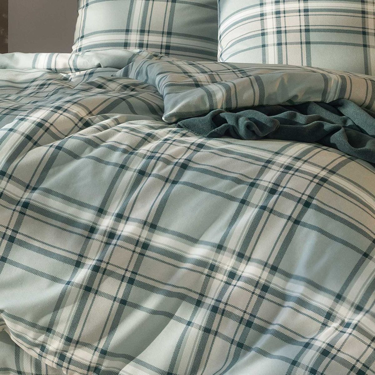Jadegrün karierte Flanellbettwäsche Estella Hannes aus 100 % Baumwolle, mit Reißverschluss, superkuschelig.