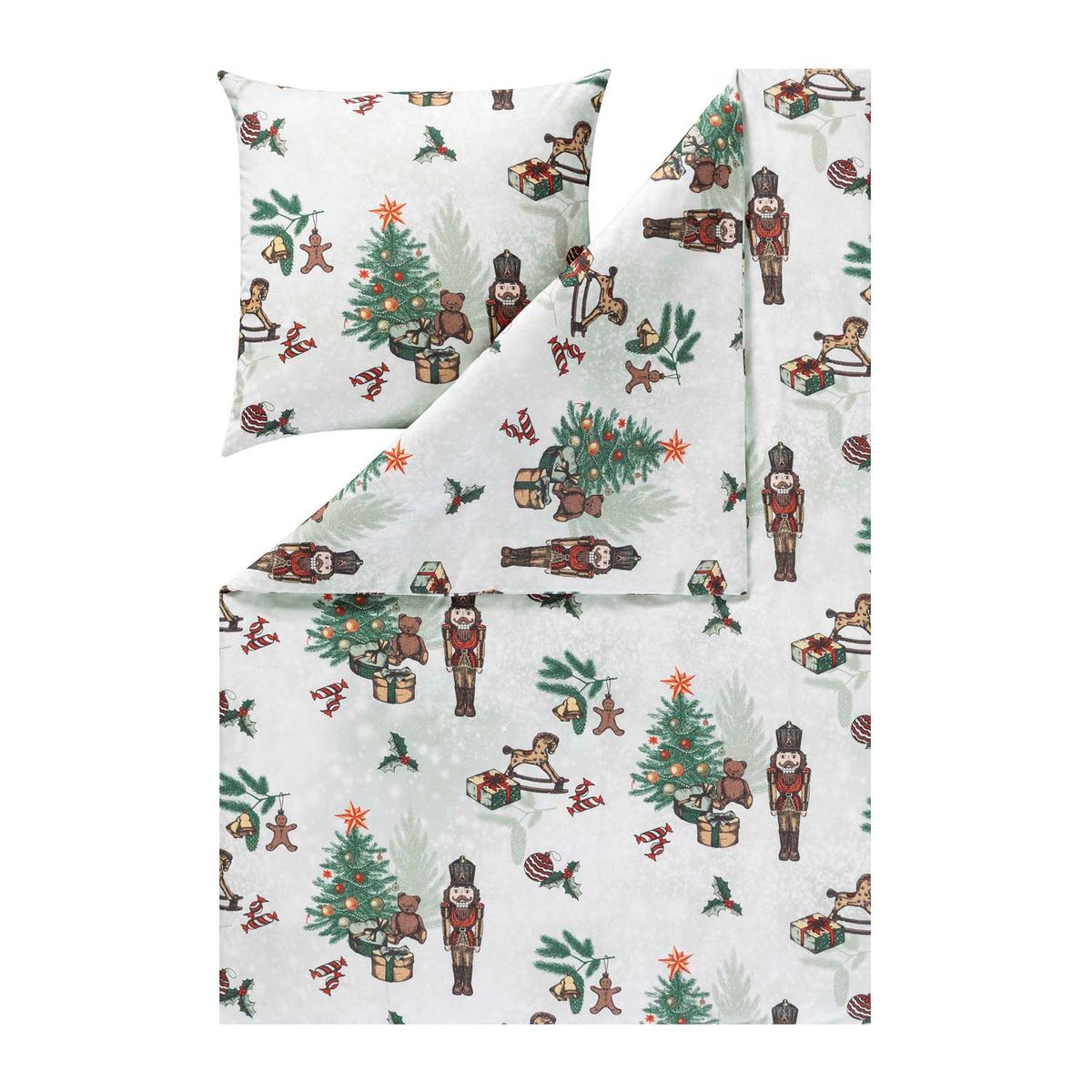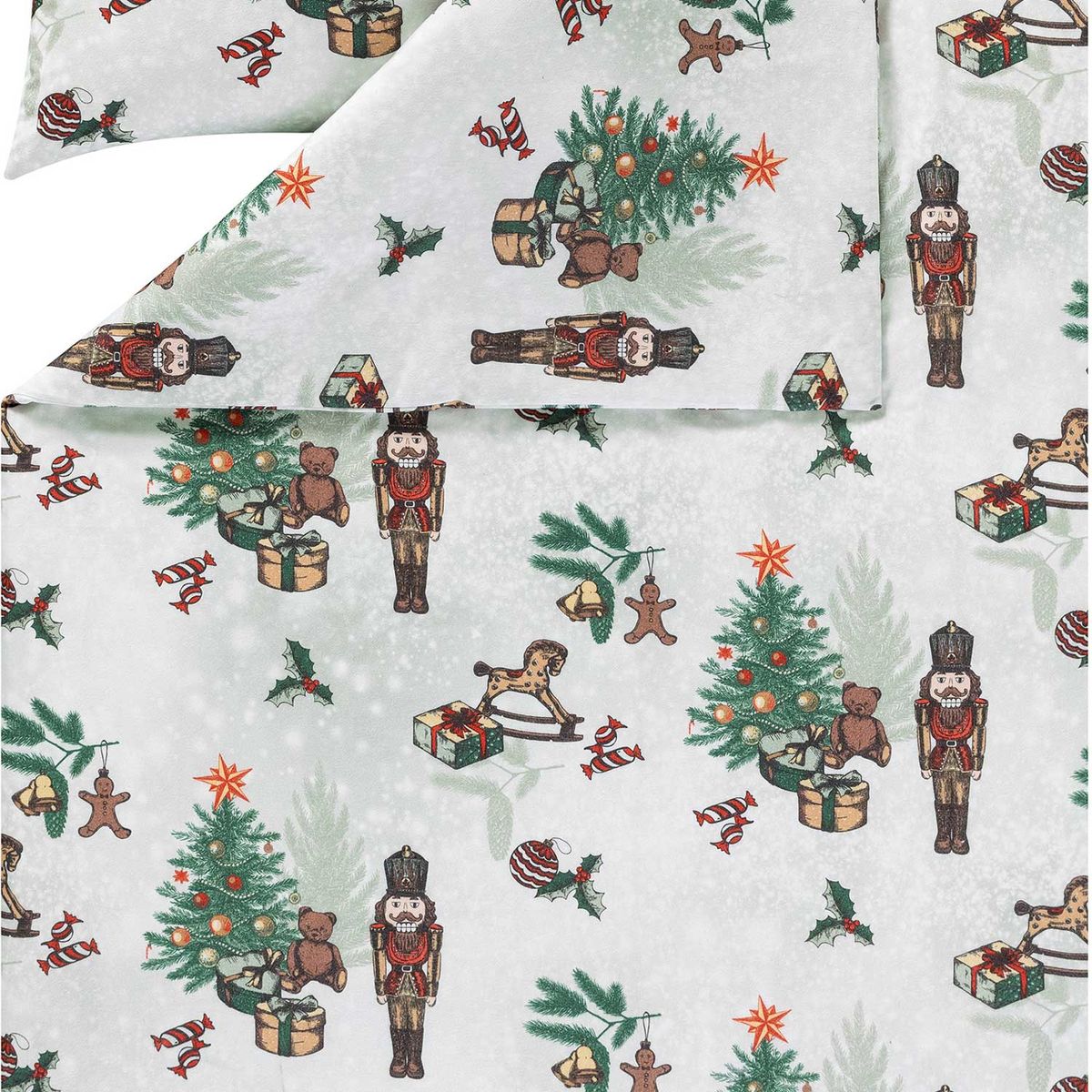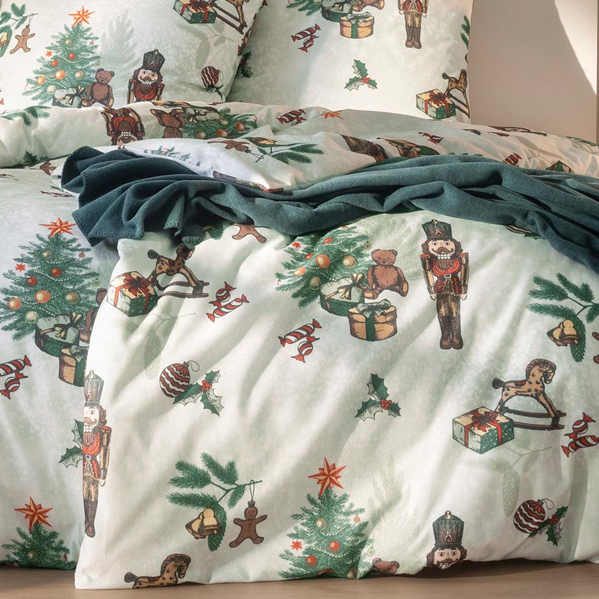Kuschelweiche, warme Bettwäsche Estella Nutcracker mit Weihnachts-/Nussknacker-Motiv. Flanellbettwäsche aus 100 % Baumwolle, mit Reißverschluss.