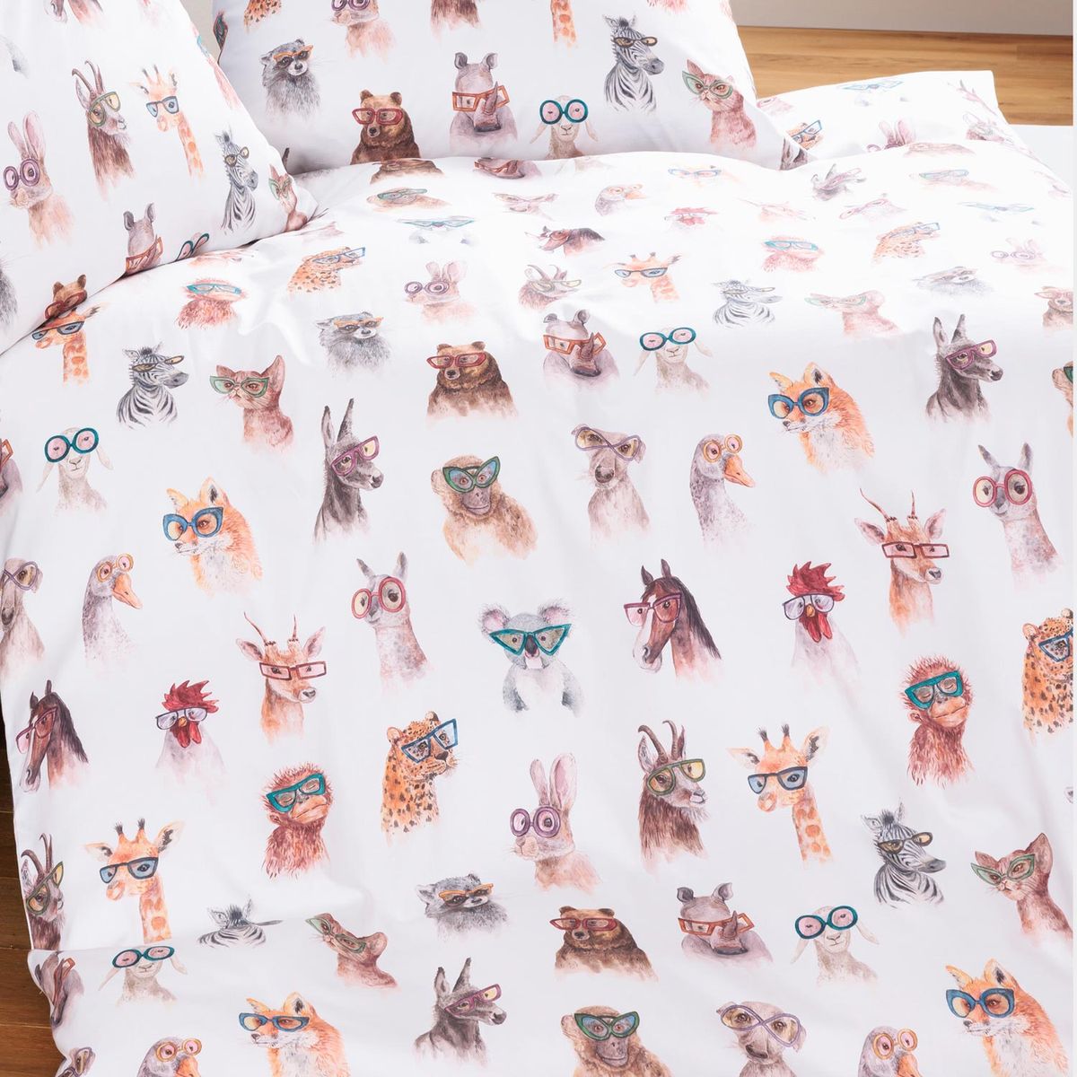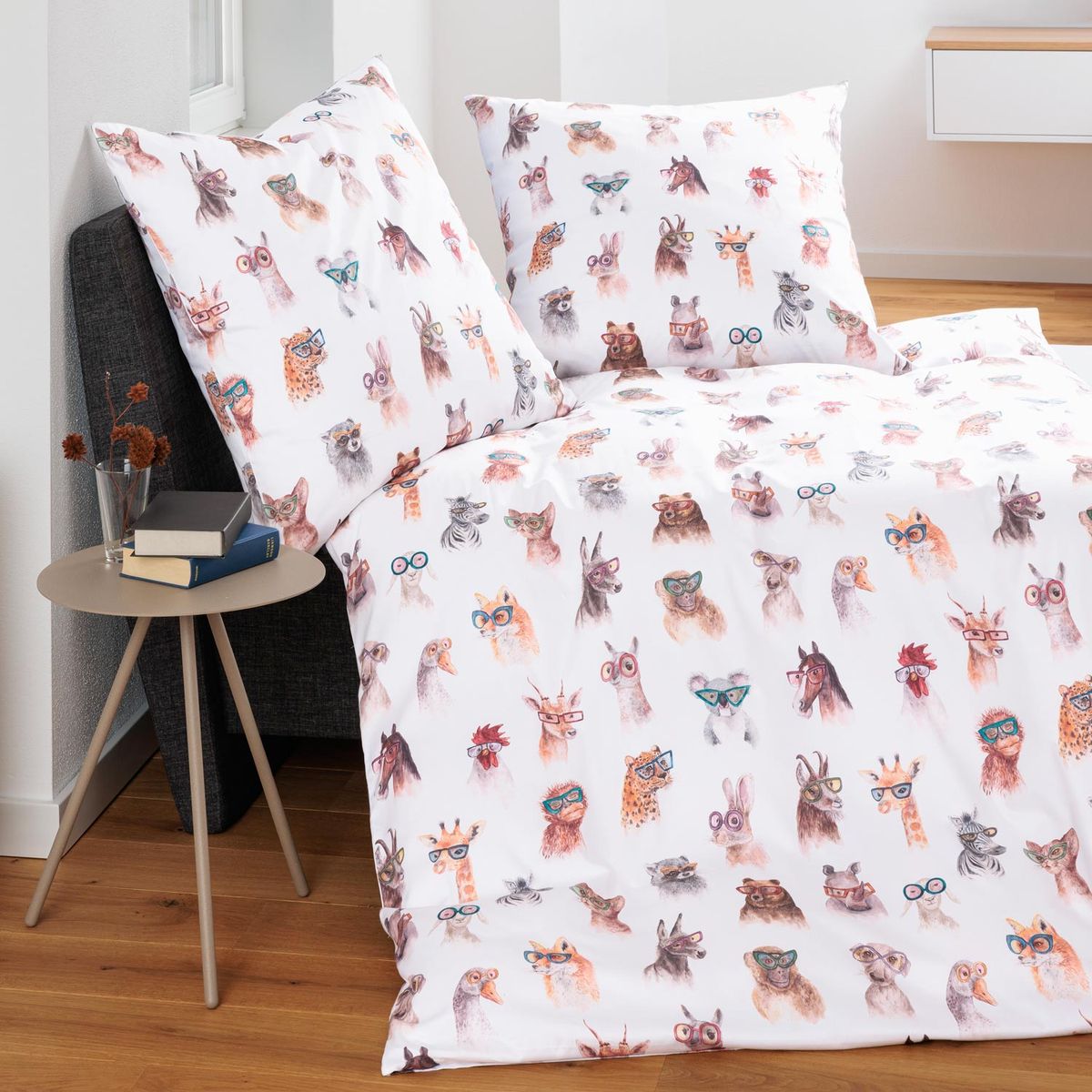 Lustige Janine Bettwäsche allover mit coolen Tieren bedruckt. Mako-Satin, digital bedruckt.