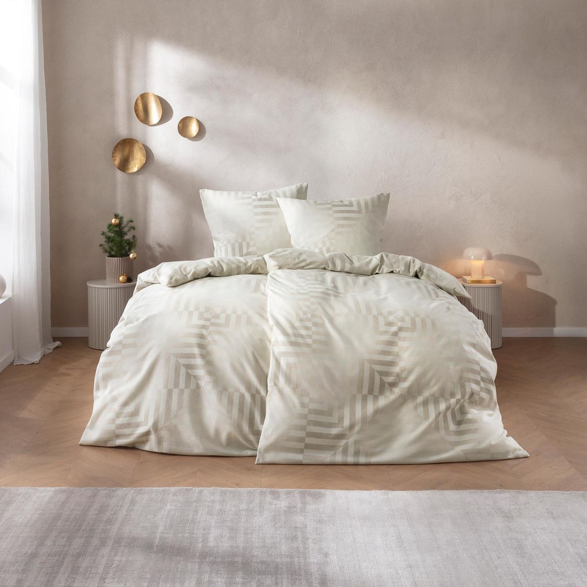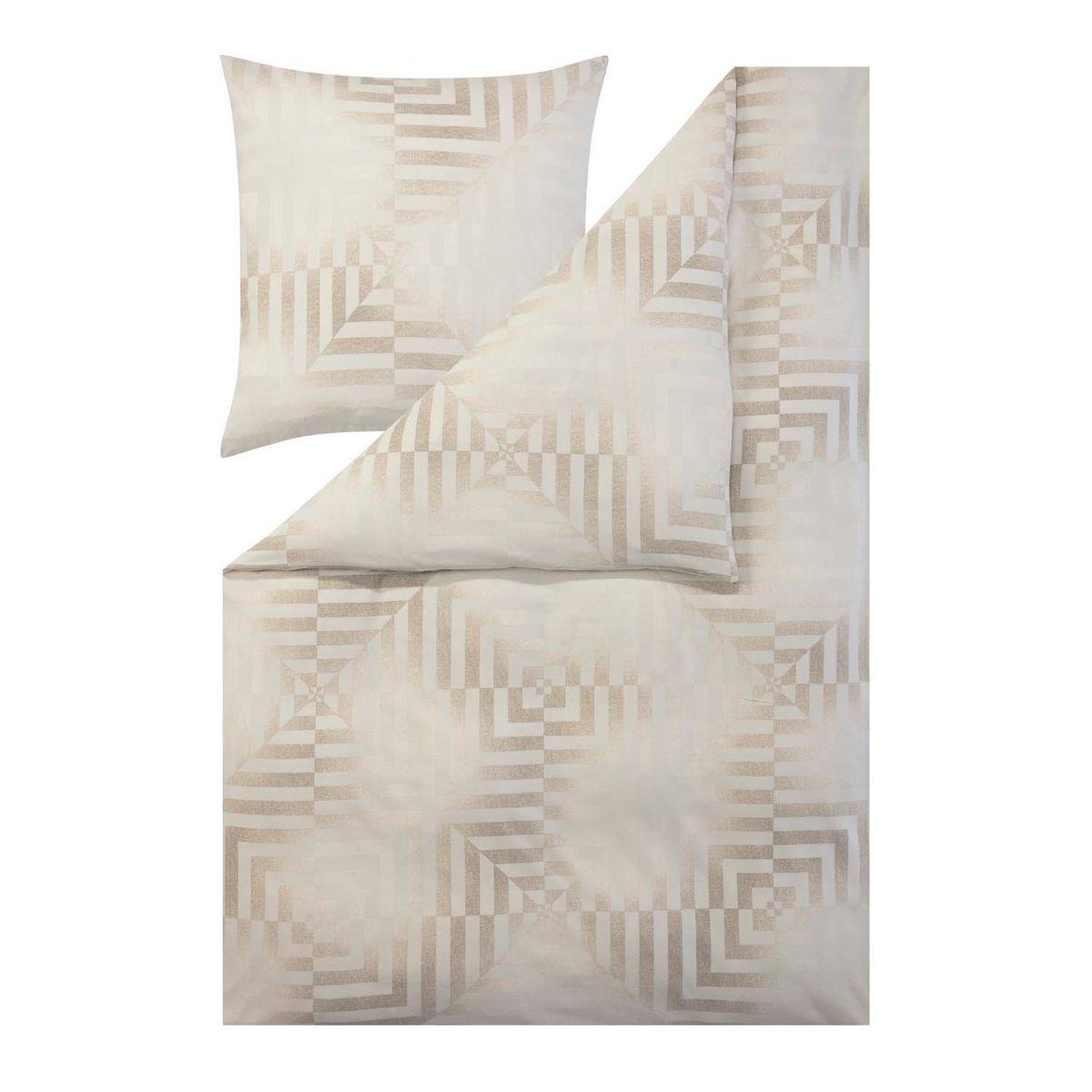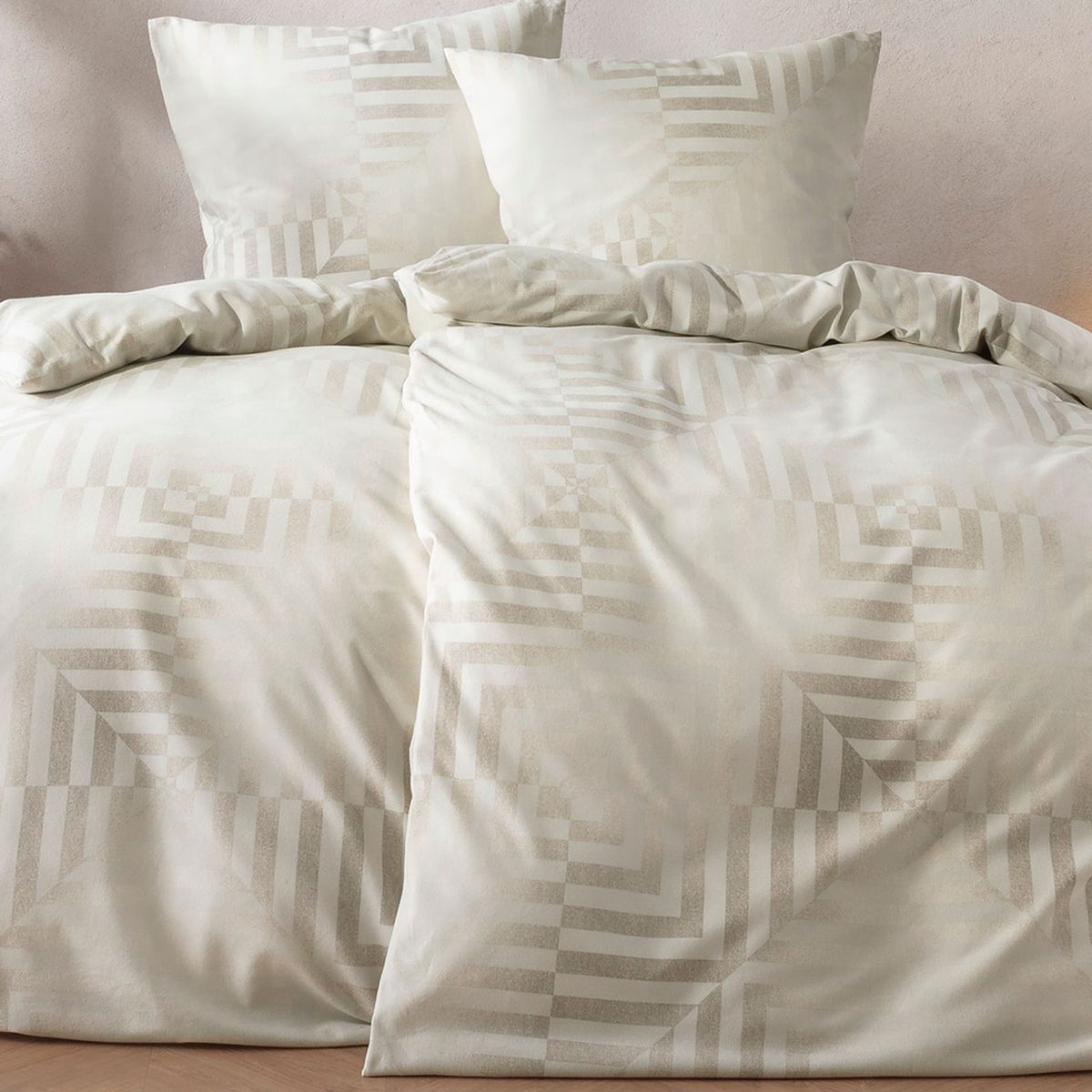 Winterbettwäsche Estella Brunico natur aus Edelflanell. Ton-in-Ton mit geometrischem Muster in beige. Kuschelweiche, warme Flanellbettwäsche aus 100 % Baumwolle, mit Reißverschluss.