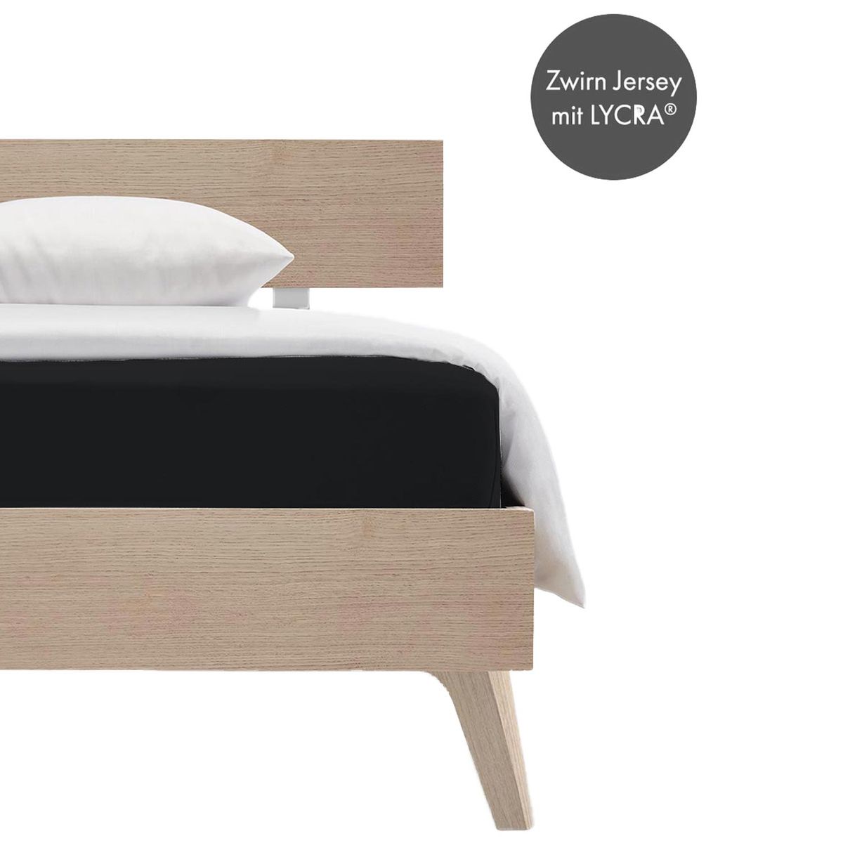 Mako-Jersey Spannbettlaken aus supergekämmtem, gasiertem Vollzwirn, mit 4 % Elasthan, Comfort-Passform mit Rundumgummi, für Matratzen bis 25 cm Höhe